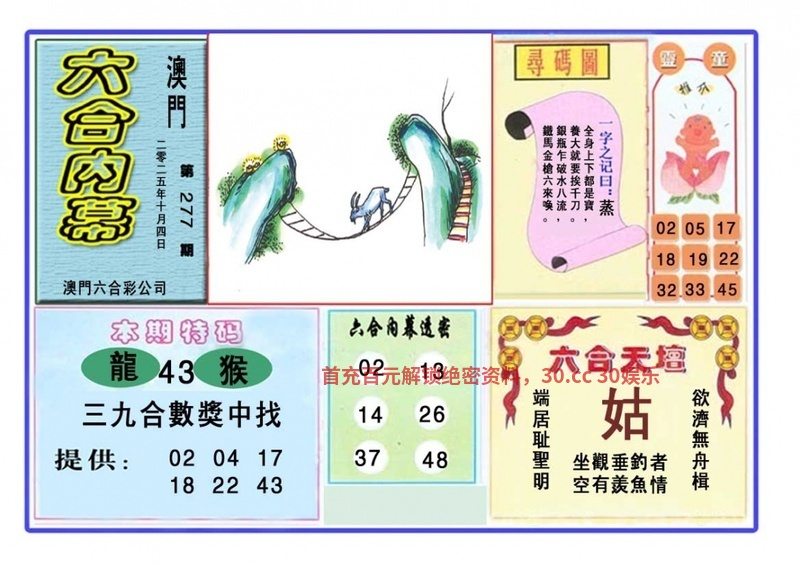 280期:黄大仙心水/简单好下注/台湾玄机诗/港台澳七肖/必中人物